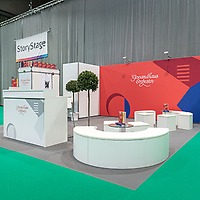 - Realisierung mehrerer Show- und Vortragsbühnen in den Hallen, inkl. Einbindung der mobilen Tribünenblöcke zur Raum- und Hallenabtrennung