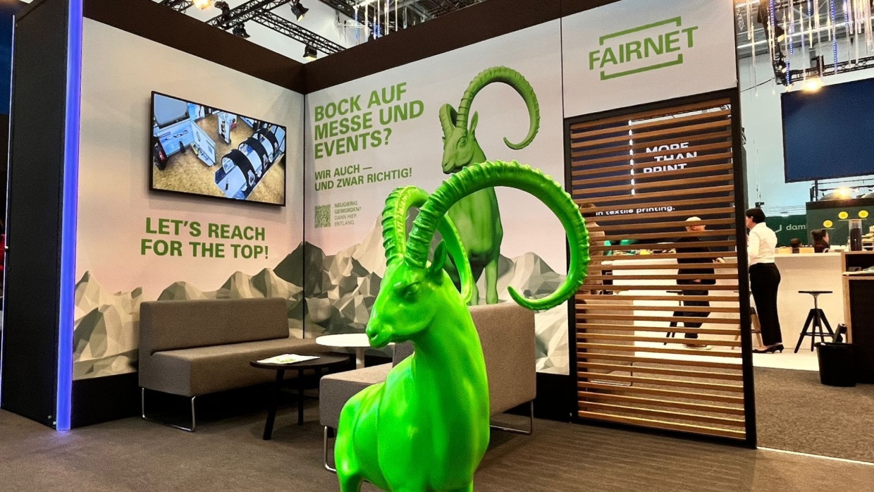 Der Steinbock in leuchtendem FAIRNET-Grün war der Blickfang des Messeauftritts bei der EuroShop 2026 in Düsseldorf. Er erwies sich außerdem als tierisch guter Anlass, persönlich ins Gespräch zu kommen. Das Team blickt auf fünf Tage voller intensiver Gespräche mit Kunden, Partnern und potenziellen Neukunden sowie Networking mit internationalen Kollegen.