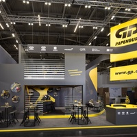 Auf der relativ kleinen Standfläche von 75 Quadratmetern mit 35 Quadratmetern auf einer zweiten Etage wurde im prägnanten Erscheinungsbild der GP Gruppe ein optisches Highlight geschaffen. Der klare Umgang mit Farben und Form brachte Ruhe und Stringenz in den Messeraum. Mit unterschiedlich hohen Podesten wurden Kommunikationsbereiche unterteilt und mit Glaselementen vom hektischen Messegeschehen separiert. Zur Veranschaulichung verschiedener Materialien hat FAIRNET sogenannte "Bubbles" entwickelt – Zylinder mit Acrylglasverschluss und unterschiedlicher Füllung. Diese dienten an mehreren Stellen als dekorative Wandgestaltung. Die Platzierung des Standes am Ende der Messehalle wurde durch eine von vielen Seiten gut einsehbare, hinterleuchtete Fernwirkung in der Unternehmensfarbe Gelb (Leuchtkasten) ausgeglichen.