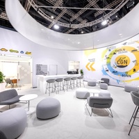 FAIRNET konzipierte eine raumgreifende, teilweise frei tragende, textile Installation, die im weiteren Sinne an Himmel und Wolken erinnert. Durch den Einsatz einer Unterkonstruktion aus Alu-Elementen, welche mit textilem Material bespannt wurde, entstand eine angenehme Leichtigkeit des Innenraums. Die Lichtinszenierung und das übergroße Airportkürzel sorgten für eine optimale Fernwirkung und eine interessante Atmosphäre in der Lounge. Die verschiedenen Gesprächsbereiche und die Bar boten ausreichend Möglichkeiten der Kommunikation zwischen Airport und Gästen.