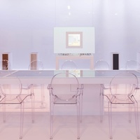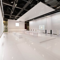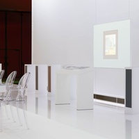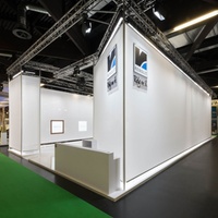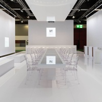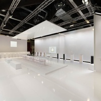 Ganz in Weiß gehalten und über größtenteils unsichtbare Lichtquellen perfekt ausgeleuchtet, dominierten zurückhaltende Oberflächen die minimalistische und futuristische Architektur des RENOLIT-Messestandes. Ein umlaufender transparenter Rahmen bildete die äußere Hülle des Standes. Möglich wurde die Gesamtinszenierung durch die Zusammenarbeit mit verschiedensten Dienstleistern wie Digital- und Lichttechnik, Stoffbau und Catering. Auf einem zehn Meter langen Tisch mit integrierten Monitoren wurden mittels einer Multimedia-Show die neuesten Produktinnovationen präsentiert.