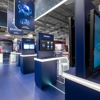 In Anlehnung an das Corporate Design von Schwarz Digits und STACKIT hat FAIRNET grafische Elemente in Objekte und Möbel überführt und ein signifikantes und gesamtheitliches Erscheinungsbild entwickelt. Von der Decke bis zum Boden wurden Keyvisual der Marken in den Raum übersetzt. Die Kernbereiche Cloud, Cybersicherheit, Künstliche Intelligenz, Kommunikation und Workspace wurden klar gekennzeichnet und mit ihren digitalen und physischen Präsentationen unter einem gemeinsamen Dach zusammengeführt. Der so kreierte Baukasten von verschiedenen Elementen bildet die Basis für eine eigenständige Inszenierung der Marken und für eine Präsentation, die sich flexibel und variabel auf unterschiedliche Ansprüche adaptieren lässt. Auftritte bei wichtigen Branchentreffen veranschaulichen die Stärken des modularen Systems bis hin zur Inszenierung einer eigenen Markenwelt auf 320 Quadratmetern bei der TECH in Heilbronn.
