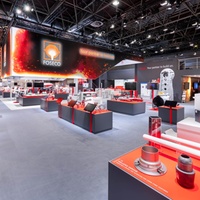 Whether under a digital bridge or the simulated liquid steel, red-hot and surrounded by flying sparks, the dominant feature in each case drew attention to the highlights from the foundry industry, products, projects and services, and at the same time formed the gateway to the Foseco world. State-of-the-art LED technology was used - effective and, above all, energy-saving. And not only there: the entire stand concept was designed for sustainability. The focus was on reuse and recycling, without losing sight of the highest quality standards. For personal talks and meetings with business partners, the second floor of the stand was used.