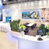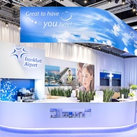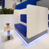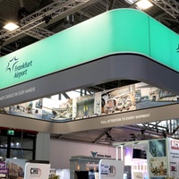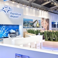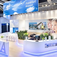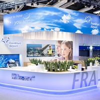 Individual areas for the presentation of co-exhibitors, casual talks, hospitality and entertainment, calmer conversations in separate rooms, as well as a specially designed lounge as a place to retreat were linked together without interfering with each other. All areas were designed to function alongside, complementing each other, offering maximum benefit and creating the optimal platform for communication and exchange. The eye-catching ceiling construction not only carries the logo, messages and image pictures, but also effectively changes colour, thus creating optimal long-distance recognition in all directions. FRA-Cargo presented itself as an attractive service provider for customers and partners in the air as well.