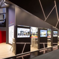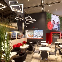 The implementation was carried out using an unusual and dynamically modern design language in order to present URW as an innovative and future-oriented company. High-quality materials were used in all stand construction areas; also to optimise the use of resources in the following years. The creation of a wide variety of communication zones, such as consulting tables as an open area, consulting tables as a semi-enclosed area, separate meeting rooms with individual and project-related design, as well as various lounge areas with a very personal touch, enabled URW to communicate optimally with its customers.